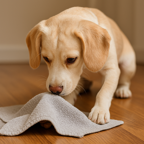 테스트 방법: 간식을 수건 아래에 숨긴 뒤 강아지가 얼마나 빨리 찾아내는지 확인해보세요.